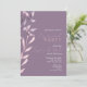 Voici notre magnifique invitation à la fête de fiançailles, avec de beaux feuillages roses et violets qui bordent le côté gauche de la papeterie. L'arrière - plan violet profond offre un cadre luxueux pour un design élégant, créant une invitation attrayante et sophistiquée qui impressionne vos invités. L'utilisation d'une jolie police de caractères pourpre pour les noms du couple et le mot "fiançailles" complètent magnifiquement le feuillage violet, tandis que le mot "party" est écrit dans une police rose magnifique pour correspondre aux feuilles roses, ajoutant une touche ludique au design. Cette invitation est parfaite pour les couples qui planifient un futur mariage dans un jardin ou qui ont choisi le rose ou le violet comme couleurs mariages principales. Le design simple et étonnant donnera le ton d'une célébration inoubliable de l'amour et de l'engagement. Commandez notre invitation de fiançailles est facile et pratique, et nous vous garantissons que vous et vos invités seront impressionnés par la qualité de notre papier et de l'impression. Faites confiance à nous pour vous aider à faire de votre fête de fiançailles une occasion mémorable que vous aimerez pour toujours.