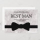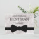 Ce 5" x 7" beau temps à votre service est demandé comme la meilleure carte d'invitation de l'homme Groomsman. C'est mieux pour le marié. Si vous cherchez à demander à quelqu'un d'être votre toiletteur pour votre futur mariage, alors pourquoi ne pas choisir ces cartes de toiletteur. Cette carte d'invitation customisée fera de votre ami, frère, cousin, neveu, fils ou qui que ce soit d'autre que vous choisissez sentir cet extra spécial. Cette invitation est facilement personnalisée en cliquant sur le bouton customiser sous l'image où vous pourrez changer le texte, la police et la taille. Vous pouvez invitation vos meilleurs copains avec style avec ces invitations classe. Il convient au Best Man ou aux Groomsmen. Envoyez-leur cette carte de groomsmen.