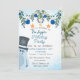 Cette invitation fantaisiste et enchanteresse présente un Yeti charmant avec un chapeau haut-de-forme qui regarde de côté. À côté, un présentoir de décoration festive composé d'ornements bleus suspendus, d'étoiles et de verdure. Sur un fond serein blanc et bleu clair, ce design unique est sûr de captiver l'imagination de vos invités et de créer un sentiment d'émerveillement et de joie. Parfait pour un événement sur le thème de l'hiver ou des fêtes, cette invitation est un moyen délicieux d'ajouter une touche de magie à votre occasion spéciale.
