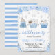 All aboard the Arctic Express! This whimsical winter-themed birthday invitation features a charming train of arctic animals — seal, polar bear, deer, penguin, and kitten — rolling through a snowy landscape in frosty blue train cars. Snowflakes, watercolor florals, and dangling beads add a magical touch to this cool-toned celebration. Perfect for a toddler’s birthday party with a winter or icy theme, even in summer months. Fully customizable with your event details.