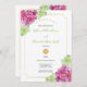 A floral wedding invitation with timeless elegance, featuring bouquets of watercolor hydrangeas in pink hues, a gold frame, and elegant script. This invitation is the epitome of sophistication and will leave a lasting impression on your guests. A keepsake that encapsulates the beauty of your special day.