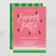 Une invitation festive d'été avec des accents de pastèque avec lettrage à la main. Cette invitation sera parfaite pour les anniversaires, barbecues et autres événements similaires.