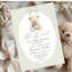Celebrate your little one with this charming baby shower invitation template featuring a teddy bear in soft green tones and an adorable watercolor bear. The design is perfect for a gender-neutral celebration and is perfect for a boy or girl.