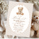 Celebrate your little one with this charming baby shower invitation template featuring a teddy bear in soft beige tones and an adorable watercolor bear. The design is perfect for a gender-neutral celebration and is perfect for a boy or girl.