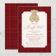 Invite loved ones to celebrate with this classic “We Can Bearly Wait” baby shower invitation featuring a hand-painted watercolor teddy bear wearing a red and cream plaid scarf. The phrase “We Can Bearly Wait” is shown in dark red calligraphy with matching serif lettering. Your baby shower details appear below, framed within a vintage-style cream border surrounded by a watercolor red and burgundy plaid background. This timeless design blends cozy charm with a refined, preppy style—perfect for fall and winter boy baby showers.