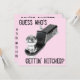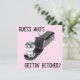As an invitation to a wedding or announcing a marriage, this is a whimsical, humourous and slightly unorthodox choice. The text, "Guess Who's Gettin' Hitched?" can be moved, removed or modified to suit your personality . . . as can the background colour which is offered in pink. Just don't forget to include the pertinent information on the reverse side . . . date, time, location, etc.