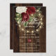 Flambant, bistro chic et floral orné d'une couronne de brindilles riche, blanc cassé et rouge foncé à bordeaux luxuriants, fleurons luxueux "Wedding shower" design sur un arrière - plan en faux bois teinté foncé. Ce design composite boisé rustique de Holiday Hearts Designs (droits réservés).
