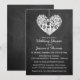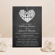 Ces coeurs suspendus sur les invitations wedding showers de tableau noir sont parfaits pour tout couple qui planifie un mariage romantique et chic. Ces invitations peuvent être personnalisées pour votre occasion spéciale et feraient le faire-part parfait pour tout mariage, douche nuptiale, fête de fiançailles, fête d'anniversaire et bien plus encore.