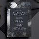 Une invitation de week-end minimaliste moderne - ou changer le texte et en faire une carte d'invitation de baccalauréat - moderne, mais classe! Doté d'une peinture à l'art numérique dans le style de l'encre fluide, les formes abstraites fluides dans les tons noir, bleu foncé, gris et blanc. Le choix idéal pour un marié et un homme de classe.
