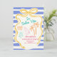 Célébrez sous les palmiers avec ce design bachelorette animé "La Dolce Vita". Doté d'éléments tropicaux comme des huîtres, des maillots de bain, des coquillages et des palmiers, le tout dressé contre un arrière - plan à rayures ludique, parfait pour une escapade pré-mariage audacieuse et en bord de mer.