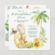 Invitation de week-end de fête de célibataire à la plage avec une mariée brune à la peau foncée en maillot de bain et scène tropicale. Itinéraire de week-end de trois jours au dos. Week-end de quatre jours également disponible. https://www.zazzle.com/blonde_bride_bachelorette_beach_weekend_invitation-256893928464890230