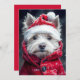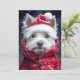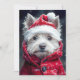 Ce mignon West Highland White Terrier est prêt pour les fêtes ! Vêtu d'un chapeau de Père Noël confortable et d'un manteau d'hiver rouge, ce petit chien capture parfaitement l'esprit de fête. Avec la neige qui recouvre doucement sa fourrure et son manteau, ce moment de conte d'hiver est plein de chaleur et de charme. Les yeux expressifs et le nez bouton du Westie ajoutent une couche supplémentaire de mignonnerie à cette scène de vacances.