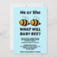 Beautifully designed 'What Will Baby Bee?' gender reveal party invitation. This invitation sets the tone for a memorable gender reveal where loved ones and friends gather to unveil the exciting news of your baby's gender. Feel free to customize/personalize this invitation to your liking. Enjoy your gender reveal!