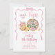 Whimsical Bow Pizza Girl Birthday Party Invitation, slice of fun pink pizza party invitation,