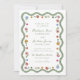 Delight guests with the artistic charm of this Whimsical Folk Art Floral wedding invitation, featuring a graceful scalloped border of watercolor greenery accented with colorful folk art florals and decorative dots. The couple’s names and wedding details are displayed at the center in green handwritten script paired with classic serif lettering, creating a beautiful balance of personality and timeless elegance. Stylized blooms in shades of red, pink, golden yellow, blue, and ivory are thoughtfully arranged throughout the frame, adding warmth, movement, and a storybook-inspired feel. Perfect for garden weddings, outdoor ceremonies, and couples drawn to unique illustrated stationery, this invitation offers a distinctive and memorable way to share your special day.