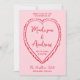 Set the tone for your celebration with this Valentine’s Day-inspired wedding invitation featuring a bold red handwritten script and a hand-drawn heart on a soft pink background. Designed with a playful retro aesthetic, this romantic invitation showcases the couple’s names inside the heart motif, creating a charming and love-filled look perfect for February weddings, Valentine’s weddings, and couples who love fun, modern stationery with a vintage touch. Personalize the design with your names, wedding date, and venue details to create a custom wedding invitation that reflects your unique style and sets the stage for a joyful, heartfelt event.