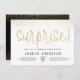 Élégants invitations de fête surprise prêts à vous customiser ! Ce design se compose d'un arrière - plan blanc classique, "surprise !" en lettres parties scintillant d'or chic, parties scintillant d'or faux, et typographie moderne. Ces cartes retournent à la parties scintillant d'or sur le noir. Changez le libellé en cliquant sur "Personnalisez ce modèle", faites défiler jusqu'à "Customiser plus loin" pour formater les polices, le placement, les couleurs, et plus ! Affichez le lien de collection sur cette page pour les produits correspondants. Visitez notre magasin pour plus de designs !