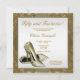 Elégante dentelle or blanc et or arrière - plan avec parties scintillant or haute chaussures talon haute invitation femme de cinquantième anniversaire de fête. Cette belle invitation de fête d'anniversaire en or pour les femmes est facilement customisée pour votre fête ou événement avec vos détails de l'événement, le style de police, la taille et la couleur de police et le libellé.