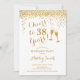 Elégante invitation à la retraite pour hommes ou femmes. Carte Invitation en or blanc et faux parties scintillant. Caractéristiques typographie de police de caractères classe, verres de champagne et confetti. Salutations à la retraite ! Personnalisez avec vos propres détails. Peut être customisé à montrer n'importe quelle année. Imprimé Zazzle invitations ou télécharger instantanément le modèle numérique. Parfait pour une retraite élégante.