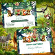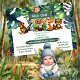 Une invitation à la fête d'anniversaire du safari dans la Jungle pour votre sauvage. Le design comprend une collection d'animaux de la jungle sous le couvert de la forêt tropicale et du feuillage. Les bébés animaux sont le singe, le lion, le faon, le renard, la girafe, le léopard et le zèbre. La carte utilise la typographie moderne. Vous pouvez modifier le texte de votre propre initiative. Le style et le script peuvent être modifiés. Vous pouvez également supprimer ou ajouter du texte.