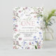 Celebrate your little one with this "She's a Wild One" birthday invitation. Featuring delicate watercolor wildflowers, clover, and blue forget-me-nots. Perfect for a boho garden first birthday. Easily customize with your daughter's name and event details.