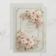 Invite your guests with a touch of soft, springtime romance using this exquisitely detailed invitation. The design features a sophisticated "ticket-style" geometric frame with inverted rounded corners, outlined by a slender double-line border in a shimmering antique gilded finish. Draping gracefully over the top right and bottom left corners are lush arrangements of blush-colored cosmos and ivory wildflowers, their petals rendered with delicate realism. The floral clusters are accented with subtle bronze foliage and stems, set against a pale, creamy background that hints at a faint, watermark-style botanical pattern for added depth. This gentle and airy aesthetic is a flawless choice for a garden bridal shower, a spring wedding, or a sophisticated high tea. You might also select this lovely design for a sweet sixteen birthday party, a mother's day brunch celebration, or a romantic engagement announcement for a couple who adores pastel florals.