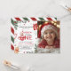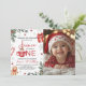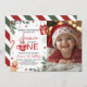 A charming winter-themed first birthday invitation featuring festive cocoa artwork, candy canes, snowflakes, pine greenery, and a warm holiday color palette. The design includes space for a personalized photo, making it perfect for seasonal or Christmas birthday celebrations. Ideal for girls’ first birthdays and cozy winter party themes with customizable event details.