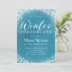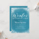 Cute hiver au pays des merveilles thème d'anniversaire d'invitation carte modèle avec texte de typographie blanche qui dit "pays des merveilles d'hiver" avec des flocons de neige brillants autour d'un arrière - plan bleu turquoise. Idéal pour la première fête d'anniversaire d'un garçon pendant la saison de Noël et d'hiver.