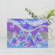 Un paysage hivernal moderne et stylisé avec des pins gelés et des flocons de neige étincelants. Invitation avec un design personnalisable bleu, violet, argent, gris et blanc pour vous de personnaliser avec votre propre texte, images et idées. Le texte peut facilement être modifié à l'aide du modèle fourni ou cliquez sur le bouton "Customiser" pour effectuer d'autres modifications. Un dessin numériquement crayon de couleur rehaussé par Jess Perry.