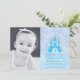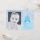 Invitations personnalisées à la fête d'anniversaire de princesse avec la photo de la fille d'anniversaire. Un château de princesse d'hiver gelé avec "Il était une fois, dans un pays lointain..." puis le nom de la princesse et son âge imprimé ci-dessous, avec tous les détails de la fête.