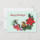 Mignonne souris brune sur une couronne de Noël. Des ornements, des poinsettias et des noeuds celtes bleus travaillent sur la couronne de Noël.