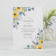 Vibrant yellow blooms contrast beautifully with muted slate blue foliage and delicate accent petals. This watercolor design features bright sunflowers and clusters of wild blue cosmos against a clean, crisp backdrop. Ideal for an outdoor summer ceremony or a rustic countryside event, the palette evokes a warm, cheerful atmosphere. The artistic brushstrokes and soft color transitions create a sophisticated yet relaxed aesthetic.
