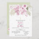 Des fleurs aquarelles roses et sauge ornent le devant de cette invitation. Accentué d'une simple croix pendante. Le dos de la carte est sauge avec des points blancs et un bouquet supplémentaire de fleurs. Fait partie de la "Collection Zoe".