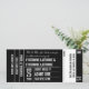 Une invitation qui emprunte son design à un billet de spectacle est un excellent moyen de commencer une soirée sur le thème théâtre, cinéma ou concert. Personnalisez la couleur de fond comme vous le souhaitez. La zone blanche est l'endroit où les invités peuvent écrire leurs noms pour la RSVP. Disponible avec des produits assortis.