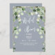 Aquarelle Foliage et Arrière - plan bleu Dusty. Fête des mariées virtuelle. Plus de détails sur le dos.