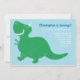 Cette adorable invitation d'anniversaire présente un joyeux dinosaure vert T-Rex et un arrière - plan bleu. Parfait pour la fête d'anniversaire d'un garçon.