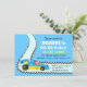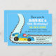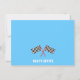 Organisez une fête d'anniversaire de voiture de course pour un garçon d'anniversaire qui aime les voitures de course et les jouets! Cette invitation à la fête anniversaire de enfant colorée et lumineuse comprend des éléments de course comme les drapeaux à damiers noirs et blancs et les drapeaux de piste de course, une petite voiture de sport bleue et jaune avec un petit coureur à l'intérieur en tenue rouge. Même l'écriture de l'invitation correspond au thème de la course où le lieu est nommé langue dans la joue comme une piste de course et l'expression "course à destination". Personnalisez avec vos détails de fête, y compris le numéro sur la voiture! La couleur Arrière - plan peut être changée pour en faire votre propre invitation !