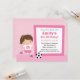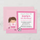 Le football n'est pas seulement pour les garçons ! Une fille peut aussi aimer le football ! Cette invitation rose et blanche est parfaite pour la fille d'anniversaire qui aime le sport de football. Elle présente une mignonne fille avec une queue de poney qui est dans un maillot de football blanc avec des rayures roses, des shorts roses et des bottes de football assorties. Elle sait aussi gérer un ballon de football. La page inverse est le motif des étoiles roses. Personnalisez facilement vos détails de fête!
