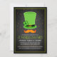 Invitations de fête du jour Saint Patrick amusantes avec un chapeau vert festif, moustache rouge auburn et confettis colorés aux couleurs du drapeau irlandais.