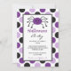 Cette invitation unique et amusante d'Halloween présente une araignée violette souriante et des pois en violet et noir... grande invitation pour une fête d'Halloween à la maison ou au bureau, fête d'anniversaire, soirée cocktail et plus encore. Copyright © Expressions Invitantes.Tous droits réservés. Usage Personnel Uniquement.