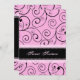 Personnalisé 16e anniversaire invitations à la fête dans l'élégant motif tourbillon noir et rose. Ajoutez votre nom et les détails de votre fête pour une invitation unique et élégante à 16 ans.