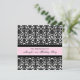 Personnalisé 21e anniversaire des invitations à la fête dans l'élégant motif classique floral damask rose pâle, noir et blanc. Ajoutez votre nom et vos coordonnées pour une invitation unique et élégante à la fête du 21e anniversaire.