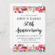Célébrez votre anniversaire d'or avec style grâce à nos invitations florales modernes à la fête du 50e anniversaire. Doté d'élégantes fleurs d'aquarelle, ce design est le parfait mélange de classique et de contemporain. Impressionnez vos invités avec cette invitation sophistiquée en commémorant 50 belles années avec votre couple bien-aimé.