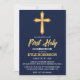 Célébrez la journée spéciale de votre enfant avec ces premières invitations de communion élégantes et sophistiquées. Dotés d'un bel arrière - plan bleu marine, d'un design croisé délicat et d'une touche de feuille d'or, ces invitations sont parfaites pour une célébration moderne et élégante. Le design est personnalisable pour correspondre au thème et à la palette de couleurs de votre événement.