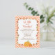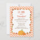 Une invitation élégante et classe à invitation de vos invités pour un dîner d'action de grâce et de grâce à la belle année. L'invitation est accompagnée d'un centre spatial blanc pour une personnalisation facile des détails. La bordure est décorée de feuilles d'automne et d'automne d'un assortiment de couleurs et de dessins, de vignes, de glands et de citrouilles. Une palette de couleurs adaptée à la saison dans différentes teintes d'orange, de marron et de vert qui ajoute au charme rustique. Arrière - plan de motif zigzag pastel orange et blanc chevron.