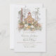 Woodland Church Forêt invitations Mariage Belle forêt boisée avec pins, église rustique, et tans neutres, vert tendre, moutarde jaune et pâle feuillage et fleurs séchées sur un arrière - plan faux, gris très clair. Le dos est un arrière - plan vert de forêt. Parfait pour un mariage avec une sensation de montagne nature. Besoin d'aide pour la mise en page, envoyez-moi simplement un email avec le lien vers tkatz@me.com