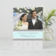Invitations faites sur commande de photo de mariage de renouvellement élégant et romantique de voeu dans le motif floral de bleu de ciel de turquoise, gris et blanc en pastel léger de damassé avec le texte entièrement personnalisable d'inclure vos détails de cérémonie de renouvellement de voeu.