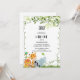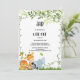 Wild One Safari Animaux Boy Birthday Party Invitation Ce mignon invitation de fête est parfait pour le premier anniversaire de votre petit garçon! Un design moderne avec un cadre de feuilles vert aquarelle (feuilles tropicaux comme la monstère et la palme), un singe portant un casquette safari, un éléphant, un tigre, un zèbre, un lion, un hippo et une girafe !