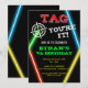 Tu es là ! Invitation amusante et éclatante à la soirée laser avec lasers colorés et une cible, idéale pour la fête d'anniversaire de votre enfant avec le laser tag, ou pour une soirée thématique sur le laser.
