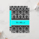 Invitations personnalisées Bat mitzvah dans élégant bleu turquoise aqua clair, noir et blanc classique motif damassé floral classique. Ajoutez votre nom et les détails de votre fête pour une invitation unique et élégante pour une fête Bat mitzvah.
